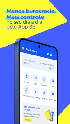 App BB handler ikke bare om daglige transaksjoner; det er også din partner for fremtiden. Utforsk et bredt spekter av investeringsmuligheter, fra aksjer og fond til Tesouro Direto, og få skreddersydd rådgivning. Simuler og søk om personlige lån eller finansieringer med trygghet, og følg med på alle avtaler direkte i appen. Med funksjoner som Cofrinho BB kan du sette og nå sparemål på en morsom måte, mens Minhas Finanças gir deg et komplett bilde av dine utgifter og budsjetter. Oppdag fordelene med Shopping BB, som gir deg cashback, gavekort og eksklusive kuponger rett i hånden.