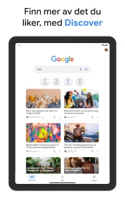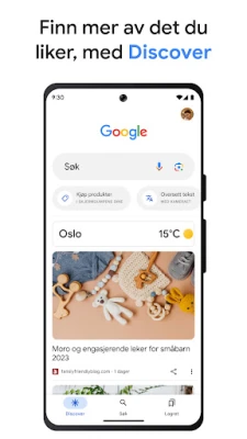 Hold deg informert og oppdag mer med Google-appen. Få umiddelbare svar, utforsk dine interesser, og motta en personlig feed med relevante oppdateringer. Opplev en app som lærer og blir bedre jo mer du bruker den, skreddersydd for deg.
