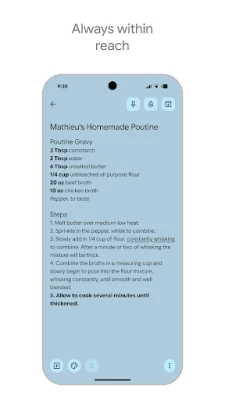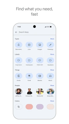 Organisering har aldri vært enklere. Med Google Keep kan du raskt fargekode og legge til etiketter på notatene dine for en oversiktlig struktur som er skreddersydd for deg. Trenger du å finne noe spesifikt du tidligere har lagret? Et raskt og effektivt søk leverer nøyaktig det du leter etter, slik at du sparer verdifull tid. Men Keep er mer enn bare en solo-opplevelse; del enkelt notater med venner og familie for å samarbeide om prosjekter i sanntid – perfekt for alt fra handlelister til detaljert festplanlegging, og se endringer skje mens dere jobber sammen.