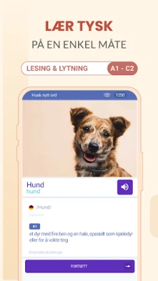 Oppnå merkbar fremgang med kun 15 minutters daglig innsats. Våre kompakte leksjoner er skreddersydd for å passe sømløst inn i din hverdag, og gir deg muligheten til å snakke og forstå tysk på kort tid. Dykk ned i over 6000 essensielle ord og uttrykk gjennom våre dynamiske flashcards, alle beriket med krystallklar lyd fra morsmålstalere for å sikre feilfri uttale. Læringen forvandles til et engasjerende spill der du følger din egen fremgang, samler belønninger og opprettholder motivasjonen. Takket være vårt vitenskapelig beviste repetisjonssystem, forankres det du lærer dypt i minnet, slik at du beholder kunnskapen på lang sikt.