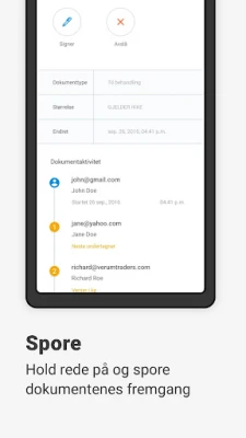 Signeasy forenkler signering og innhenting av signaturer på dokumenter, direkte fra din Android-telefon og -nettbrett. Med over 5 millioner brukere er Signeasy en betrodd løsning for effektiv og sikker dokumenthåndtering. Opplev den enkle måten å behandle dine signeringsbehov.