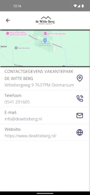 De Witte Berg inviterer deg til en uforglemmelig ferieopplevelse midt i Twentes idylliske landskap, nær sjarmerende Ootmarsum. Enten du drømmer om fredelige dager omgitt av natur, eller ønsker et komfortabelt utgangspunkt for å utforske regionens skjønnhet, tilbyr vi den perfekte rammen. Med De Witte Bergs offisielle app blir ditt opphold enda mer sømløst og berikende. Denne appen er din personlige guide, designet for å sikre at all nødvendig informasjon er lett tilgjengelig, både før du ankommer, underveis i ferien, og etter at du har reist hjem.