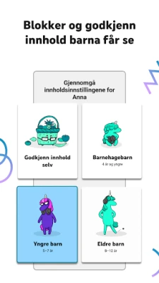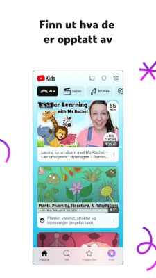 Vi forstår at hvert barn er unikt. Derfor er YouTube Kids utformet for å tilpasses deres individuelle utvikling og interesser. Opprett personlige profiler og velg mellom flere tilpassede innholdsmoduser som utvikler seg med barnet ditt. Fra modus for de aller yngste, hvor ABC og tidlig læring står i fokus, til en utforskende modus for yngre barn som elsker sanger og kreative prosjekter, og videre til en modus for eldre barn som søker populær musikk og gaming. For den ultimate kontrollen kan du også velge å kun vise innhold du selv har godkjent, og dermed håndplukke hver eneste video eller kanal.