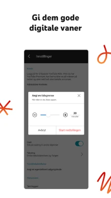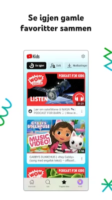 Som forelder får du kraftfulle verktøy for å forme barnas digitale opplevelse. Med avanserte foreldrekontroller kan du enkelt blokkere kanaler eller videoer du ikke ønsker at barna skal se, og du har alltid mulighet til å rapportere upassende innhold for gjennomgang. I tillegg tilbyr YouTube Kids en praktisk nedtellingsfunksjon som hjelper deg med å sette grenser for skjermtid; når tiden er ute, pauses appen, og barna oppfordres til å fortsette leken utenfor skjermen. Og for å gjøre det ekstra enkelt å finne tilbake til de mest elskede klippene, samles alle favoritter og nylig viste videoer under "Se igjen"-fanen.